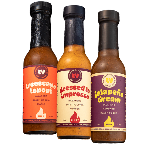 Our sauces are packed full of real ingredients with real flavors. We utilize delicious peppers like Jalapeño, Habañero, and Ghost Pepper. Aromatics like garlic, black garlic, coffee, and black cocoa imbue the sauce with complex and delicious flavors. Sweet acidity from citrus adds vibrance and balance alongside high quality vinegars. Take a look at each sauce to see the entire ingredients list!
